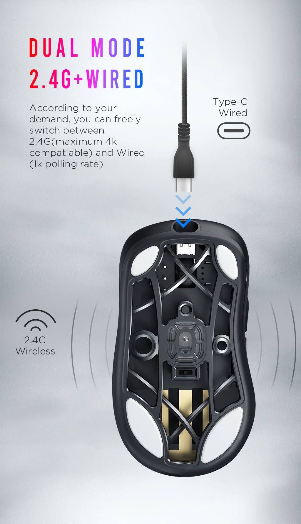 Connection: USB-C (wired) + 2.4 GHz wireless