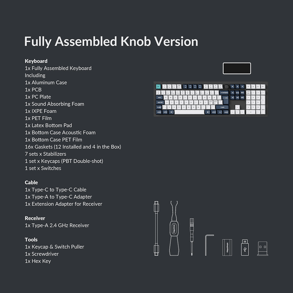 • Key stabilizers: Screw-in PCB stabilizers
