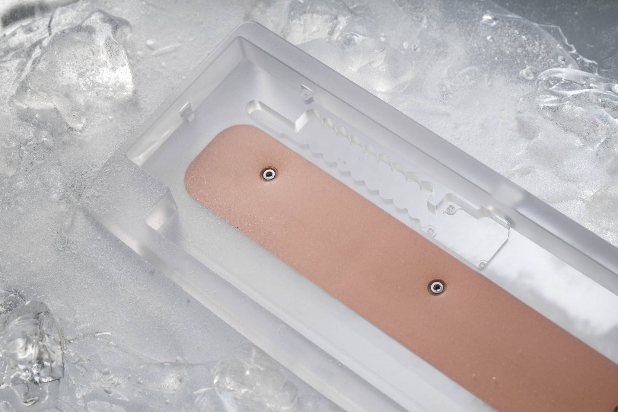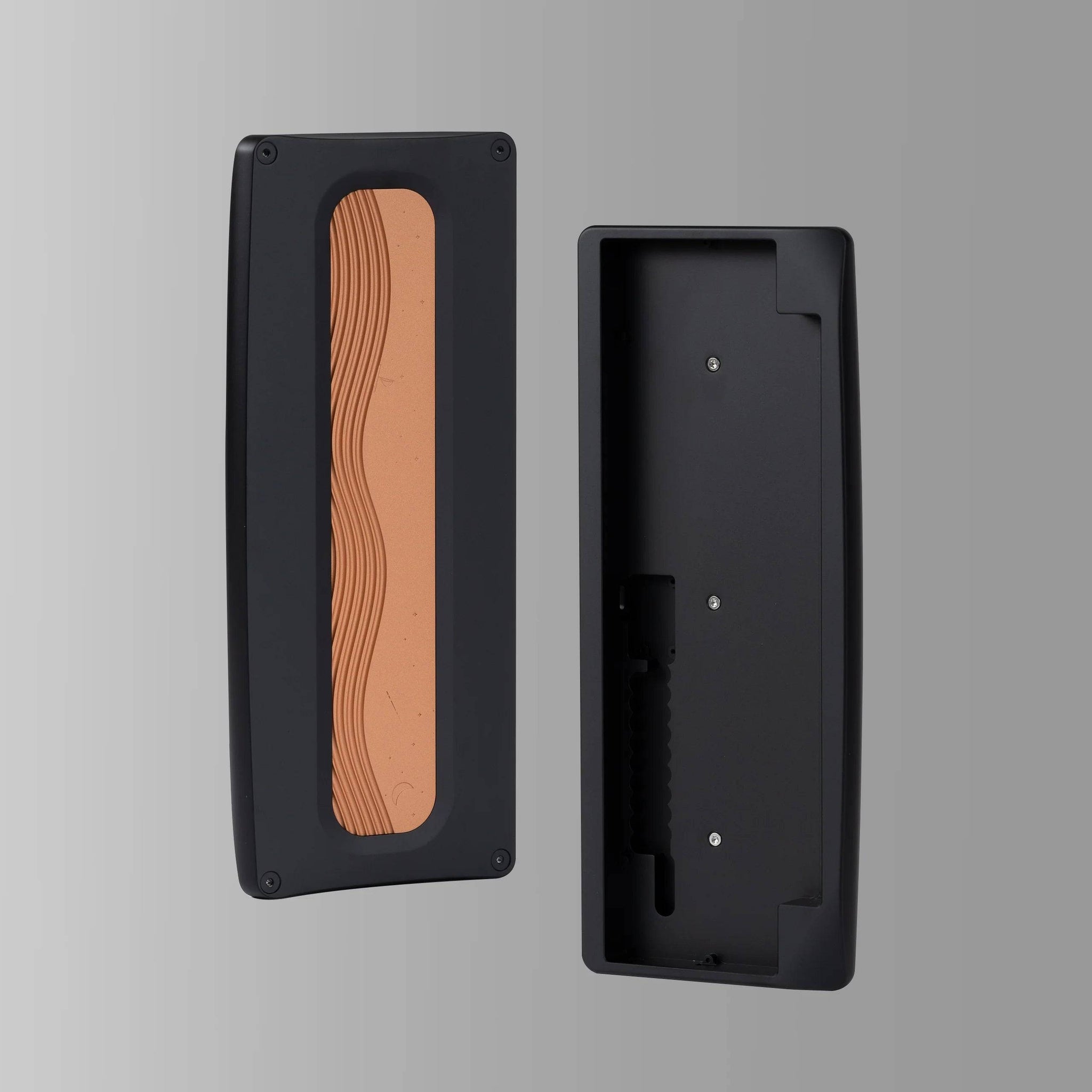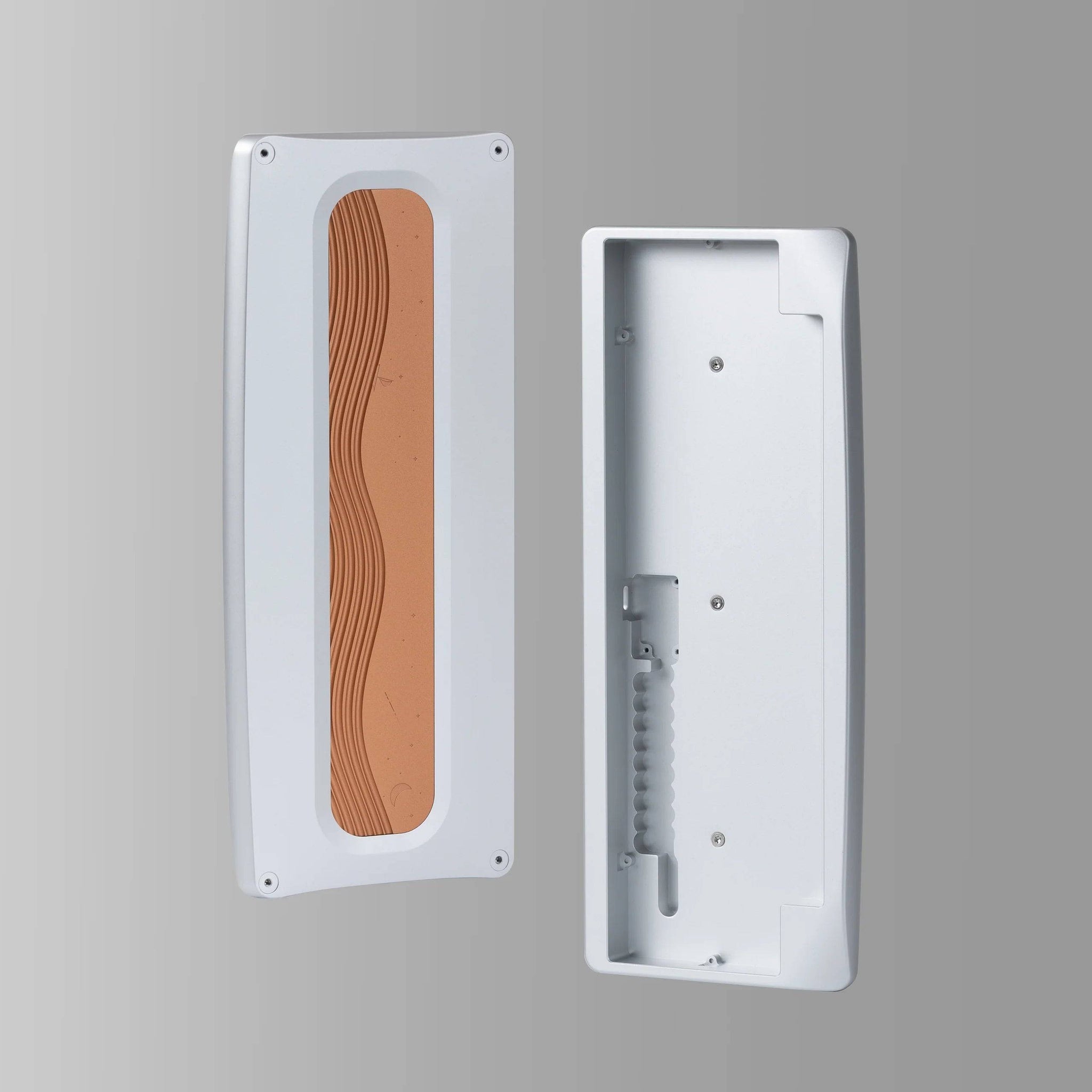 Das KBDFans Agar 60% Keyboard Kit ist ein minimalistisches Custom-Keyboard-Kit im 60 %-HHKB-Style-Layout, das ein elegantes Design mit einer sehr einfachen, einsteigerfreundlichen Montage kombiniert. Charakteristisch für das Board ist die geschwungene Gehäuseform mit einer markanten abgeschrägten Ecke sowie seitlichen Ausschnitten, die dem Keyboard eine unverwechselbare Optik verleihen. Das Herzstück des Designs ist das Silicone-Block-Mount-System, bei dem die Plate-/PCB-Einheit auf speziell geformten Silikonblöcken ruht. Dadurch entsteht ein leicht flexibles Tippgefühl und gleichzeitig eine deutlich einfachere Montage als bei klassischen Schraub-Mount-Konstruktionen. Zusätzlich sorgt eine Kupfer-Gewichtsleiste mit „Starry Sea“-Gravur auf der Rückseite für Stabilität und ein hochwertiges Finish.