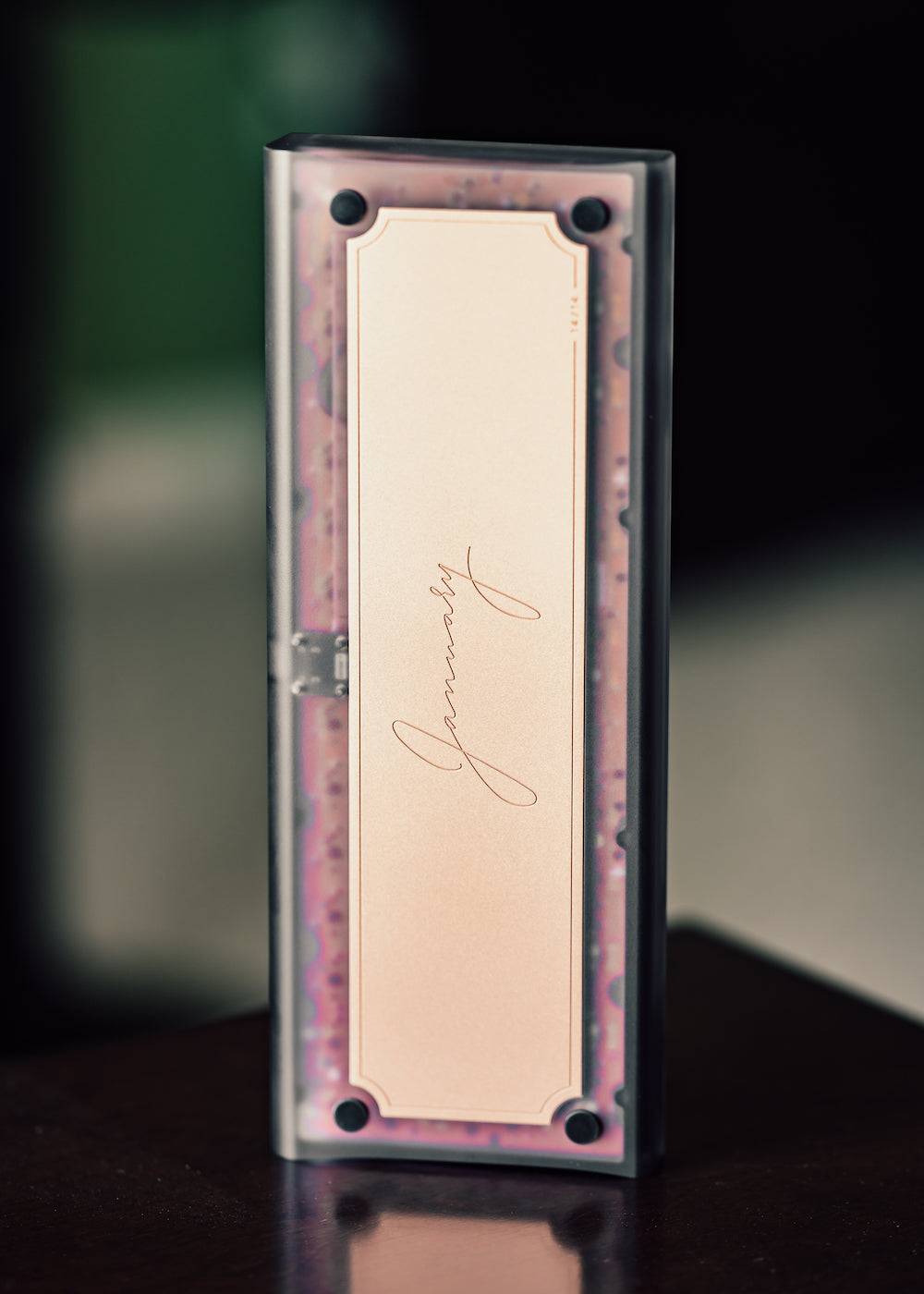 Das Artemis Design January PC Keyboard Kit (Clear Version) ist ein hochwertiges 60-Prozent-Custom-Keyboard-Kit, das gezielt für Enthusiasten entwickelt wurde, die Wert auf Akustik, Flexibilität und präzise Verarbeitung legen. Das Design kombiniert weiche, fließende Gehäusekanten mit einer klaren, modernen Formsprache und einer ergonomischen Neigung, die sowohl optisch als auch funktional überzeugt. Durch das Gummy-O-Ring-Mounting entsteht ein gedämpftes, gleichmäßiges Tippgefühl mit reduzierten Vibrationen. Ein massives, sandgestrahltes Kupfergewicht auf der Unterseite sorgt für zusätzliche Stabilität und einen hochwertigen visuellen Akzent. Das Kit richtet sich bewusst an Custom-Builder, da kein PCB enthalten ist und somit maximale Freiheit bei der Wahl der Elektronik besteht.