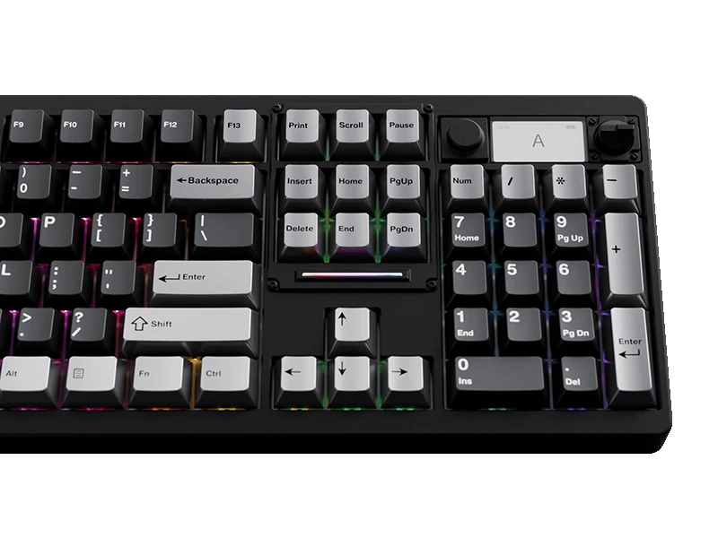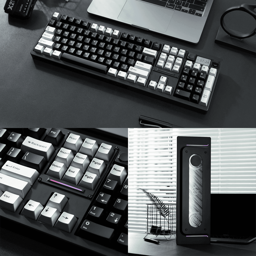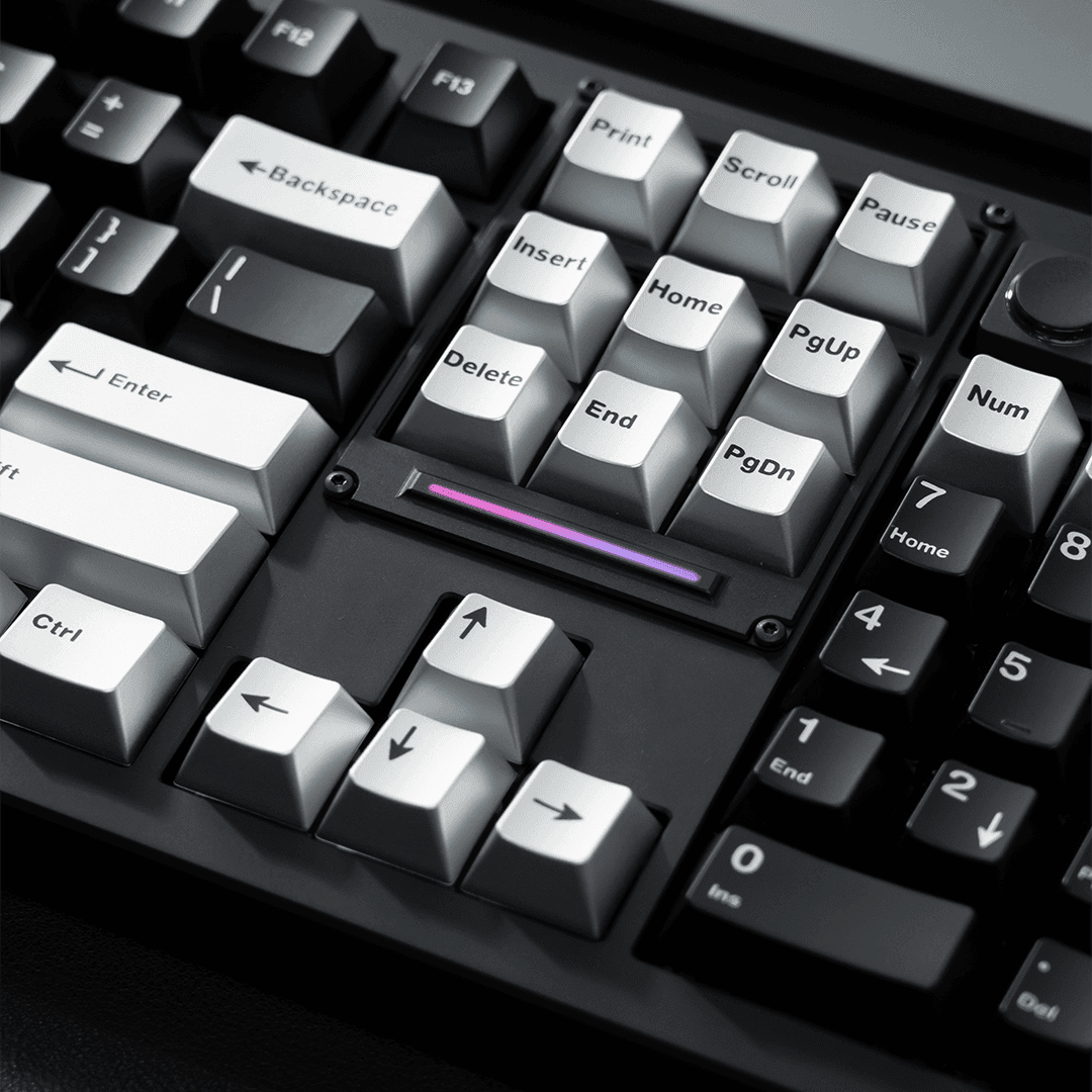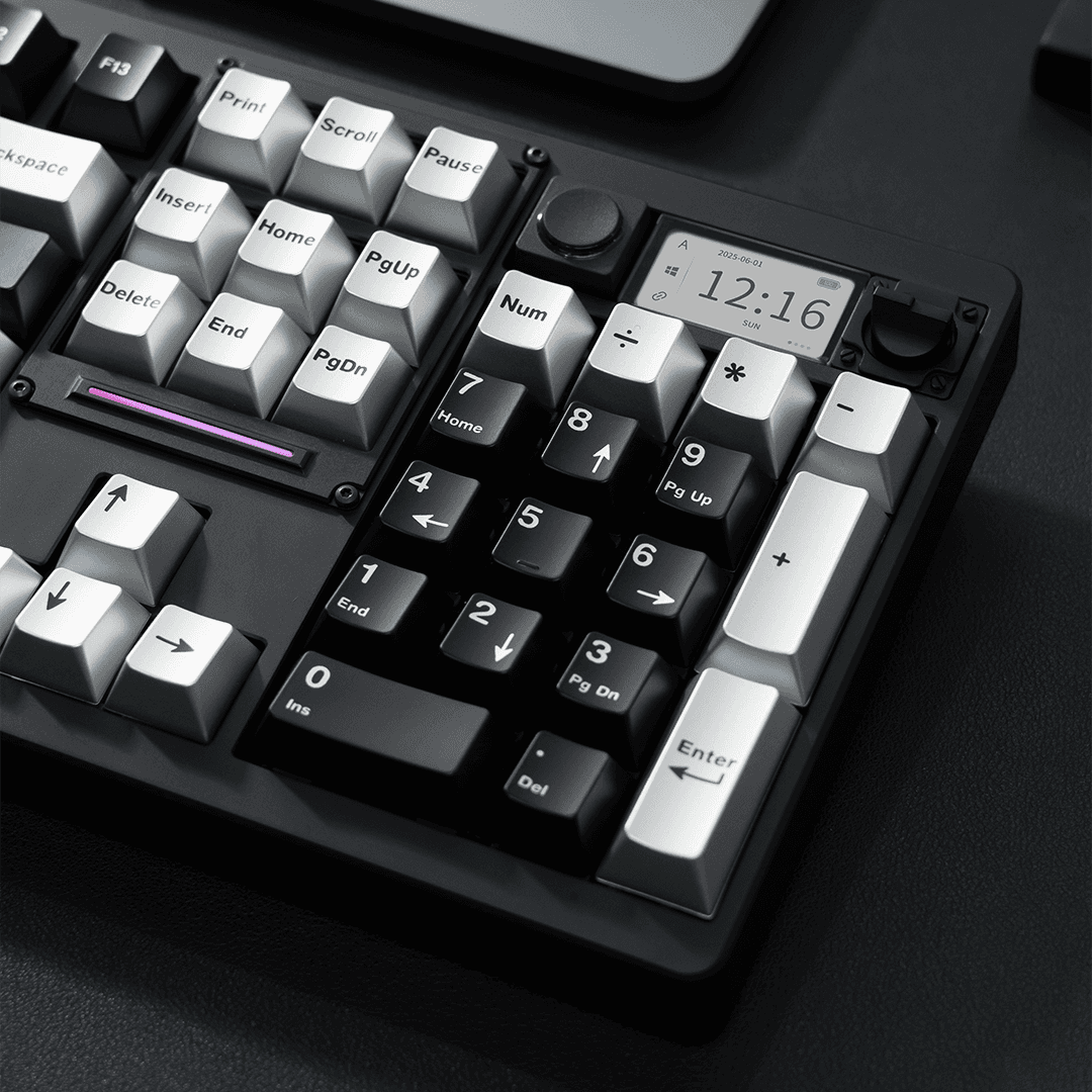 The keyboard's integrated display can show the time, calculator functions, or dynamic backgrounds – making the keyboard the control center on your desk. An additional rotary knob allows for precise control of volume and media functions, further enhancing the premium user experience.