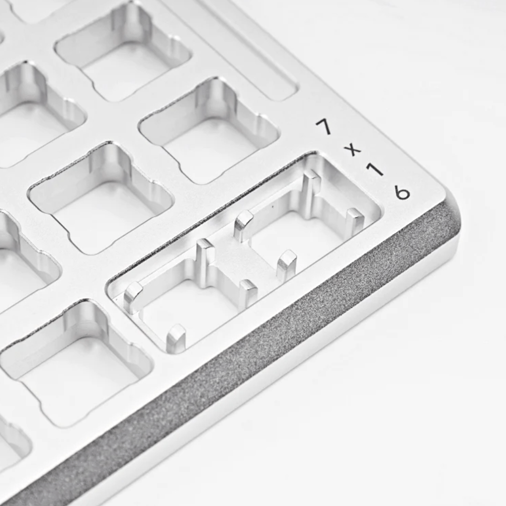 The GEON Lube Station is a high-quality stainless steel/aluminum station in an organizational format, designed specifically for lubricating and modifying mechanical switches. It offers space for a large number (over 100) of switches, integrated openers for MX and Kailh housings, and a stable, durable surface with a non-slip, stabilizing base. Ideal for users who regularly modify numerous switches or want an organized lubrication workflow.