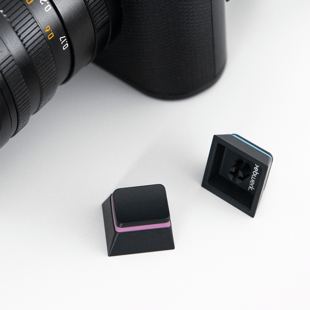 The keycap is made entirely of anodized aluminum and is adorned with a color-matched enamel stripe at the top. It replaces a standard key (e.g., Escape, Enter, or another, depending on the layout) and stands out visually from typical plastic keycaps. Its solid material and special surface treatment result in a premium sound and a robust feel that is noticeable with every press. The color blends harmoniously with blurred/gray tones and is specifically designed as a "programmer theme."