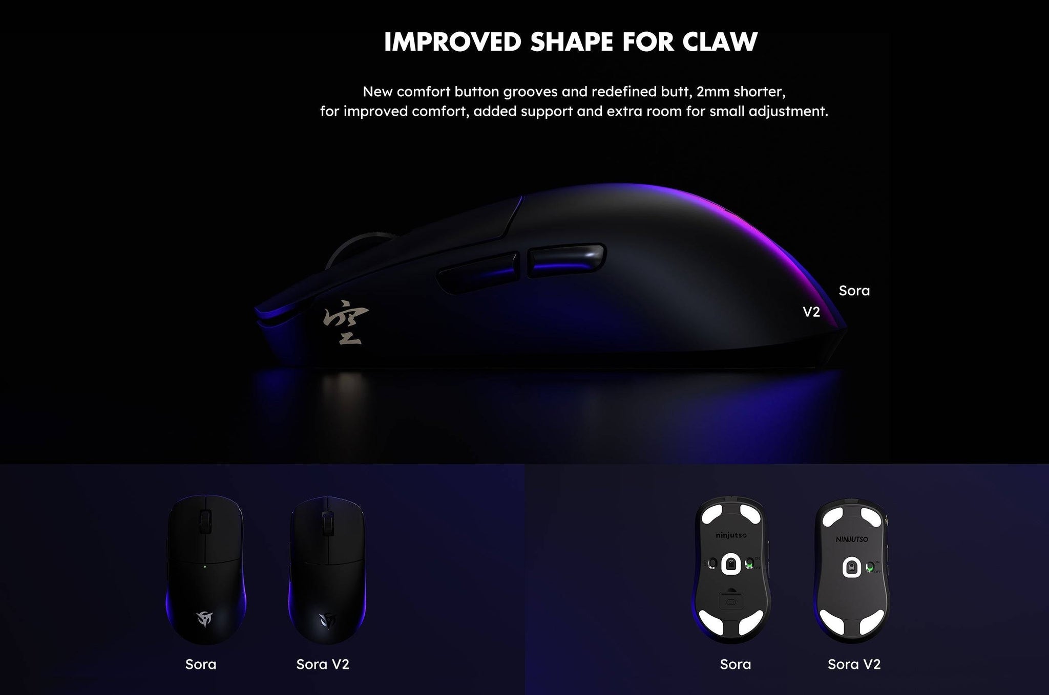 The Ninjutso Sora V2 8K (Black) is an ultra-lightweight wireless gaming mouse designed specifically for competitive gaming and maximum precision. Weighing only around 39g , it enables extremely fast and controlled movements, which is particularly advantageous in fast-paced shooter games and esports applications. The sleek black design combines a robust polycarbonate construction with an ergonomic shape that supports various grip styles. Featuring the high-performance AIMNINJA sensor and 8K wireless technology, the Sora V2 8K offers exceptionally low latency and high polling rates for smooth, precise tracking – ideal for ambitious gamers.