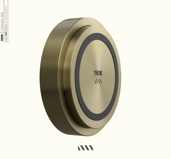 The THOK Trinket Tray is a stylish storage solution for keyboard accessories, switches, screws, or other small items on your desk. Made of high-quality metal (such as brass or titanium), it is milled and polished from a single piece of material. At approximately 75 mm wide, it is compact yet spacious enough for everyday use. Non-slip rubber feet ensure the tray stays firmly in place on your desk.