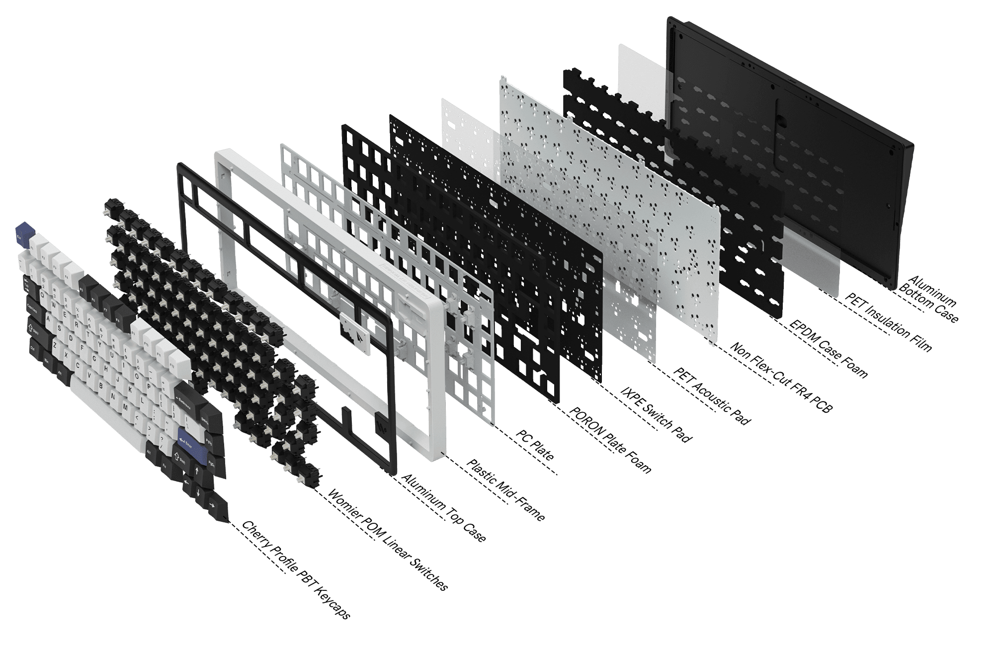 • Switches: Womier POM (linear, pre-oiled switches, depending on the variant)